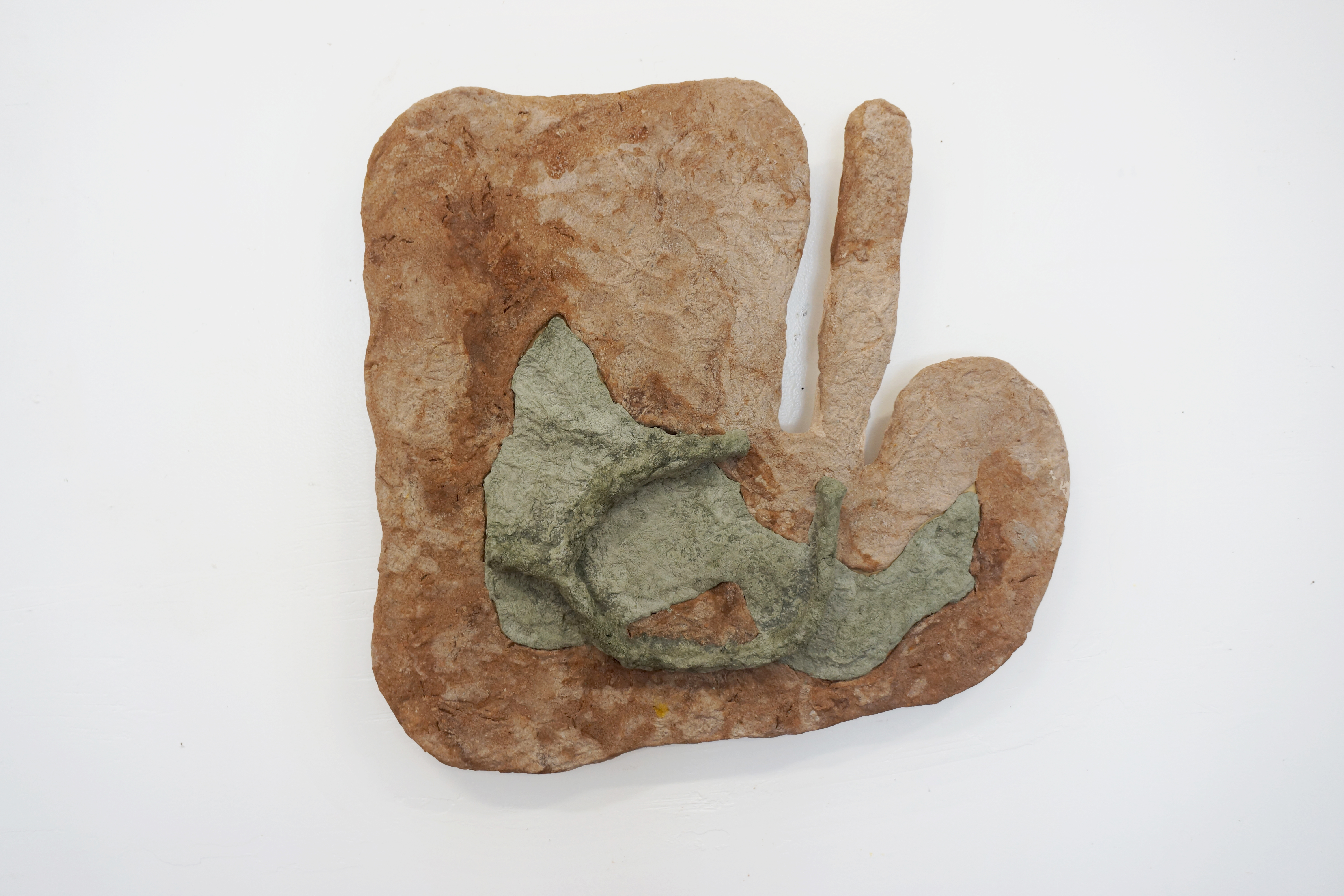 Salt dough, dye, corrugated honeycomb cardboard, found textiles, wood